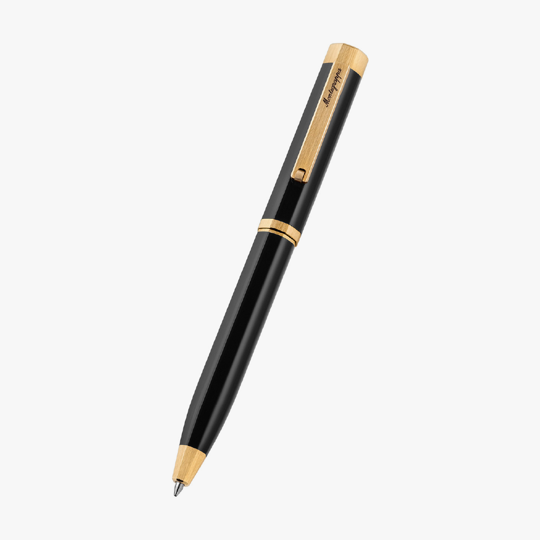Bolígrafo Montegrappa Otto oro amarillo 14K, acero y resina negra