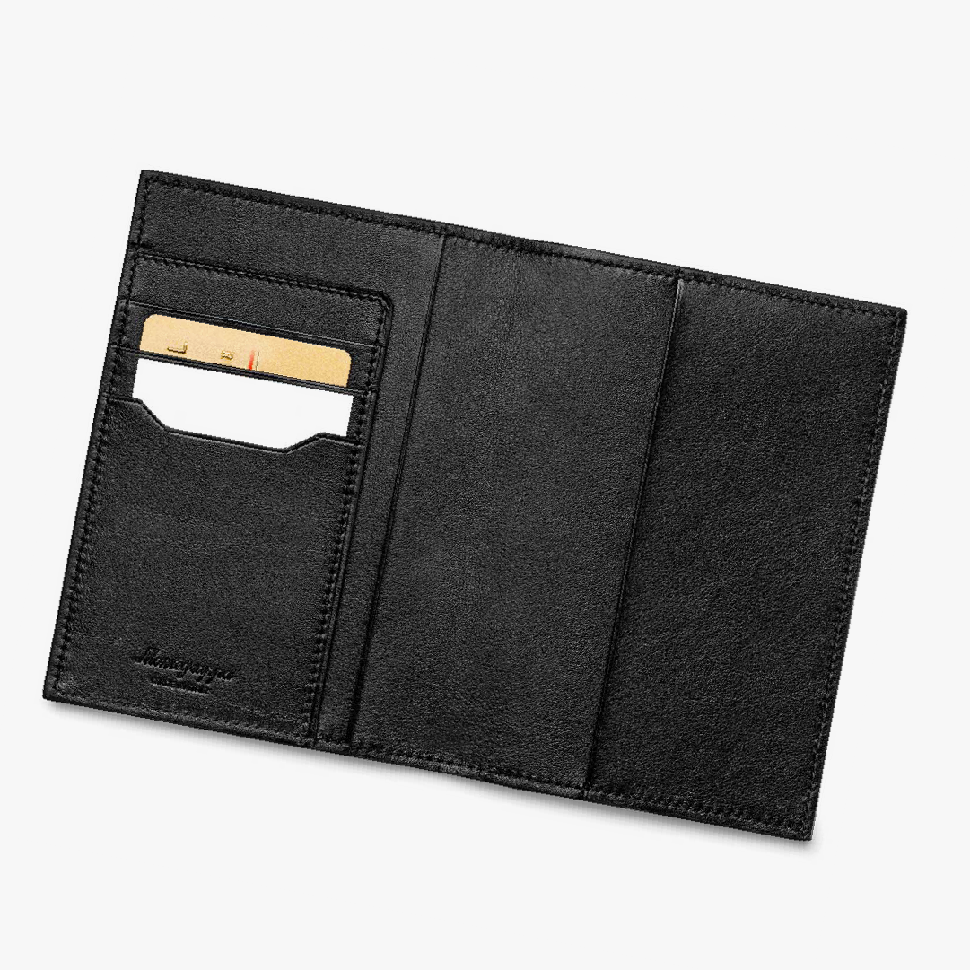 Los documentos de viaje se mantienen seguros y discretos en este estuche delgado cosido en cuero suave y satinado. Compacto y elegante, tres ranuras para tarjetas bancarias/de identificación lo convierten en una pieza esencial del kit de viaje. Tiene pasaportes de hasta 138 x 98 mm.