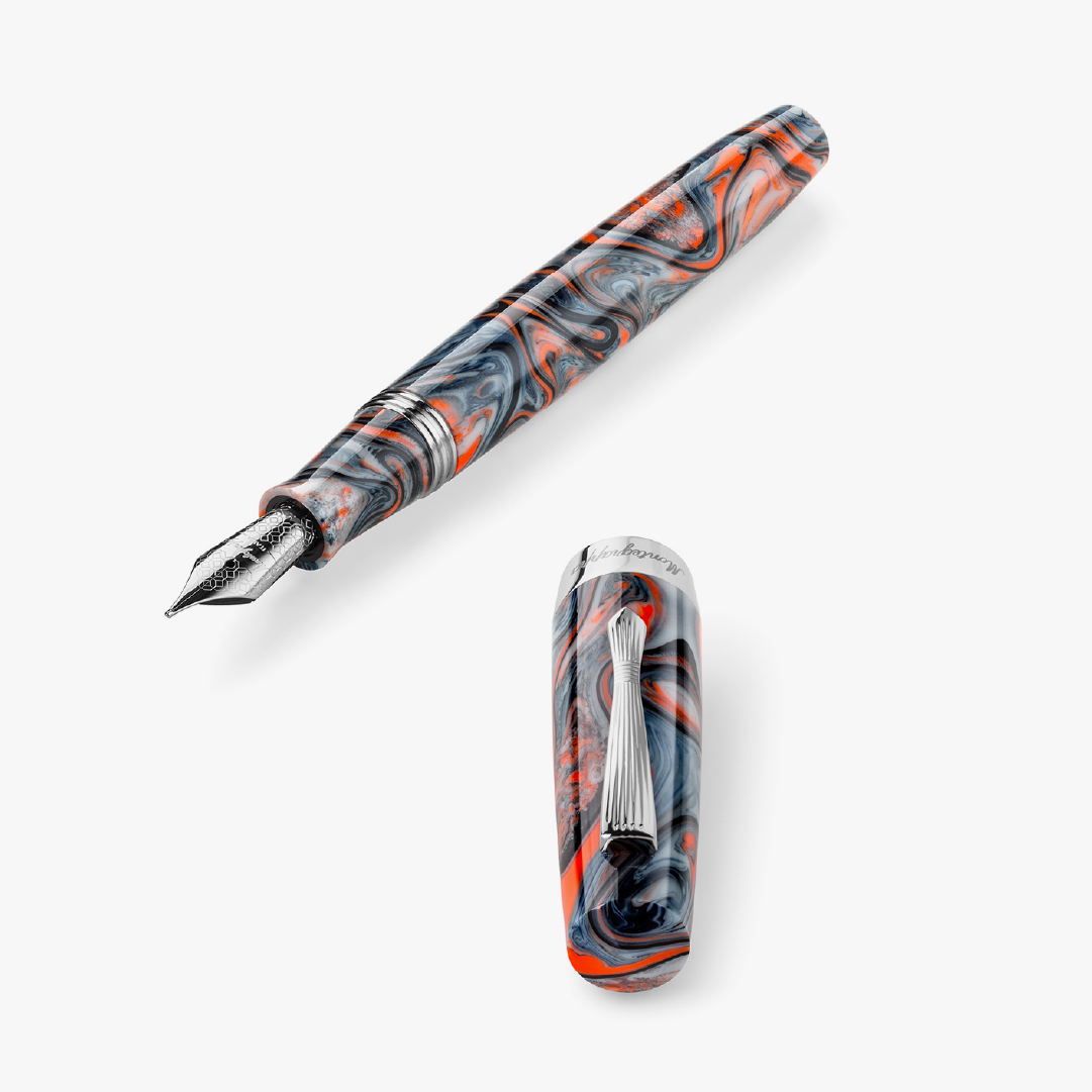 Pluma estilográfica Montegrappa Elmo 02 acero, resina rojo/marmol Croda rossa