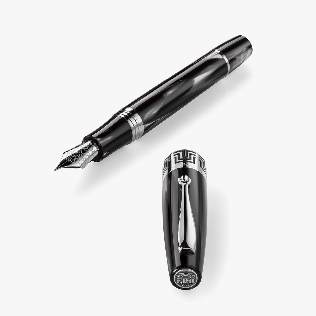 Pluma estilográfica Montegrappa Extra 1930 celuloide negro/ blanco, oro blanco 18K y plata 925