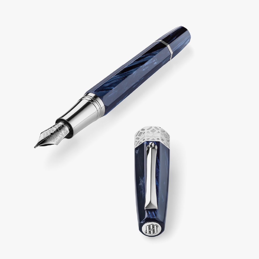 Pluma estilográfica Montegrappa Extra Otto celuloide azul oscuro, oro blanco 18K y plata 925