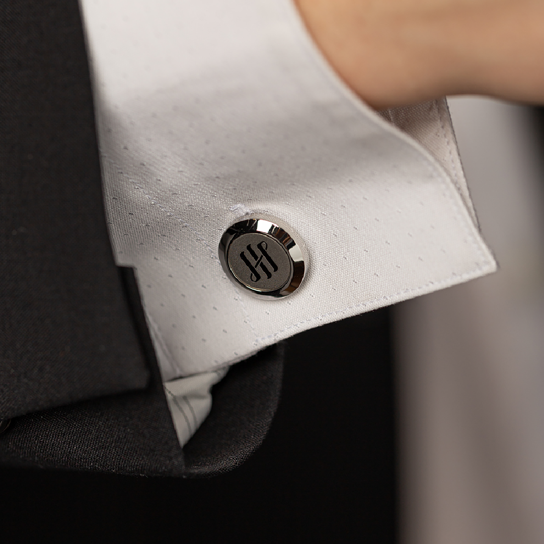 Mancornas Montegrappa Clou Ambigram redondas acero guilloché y clavos de paris