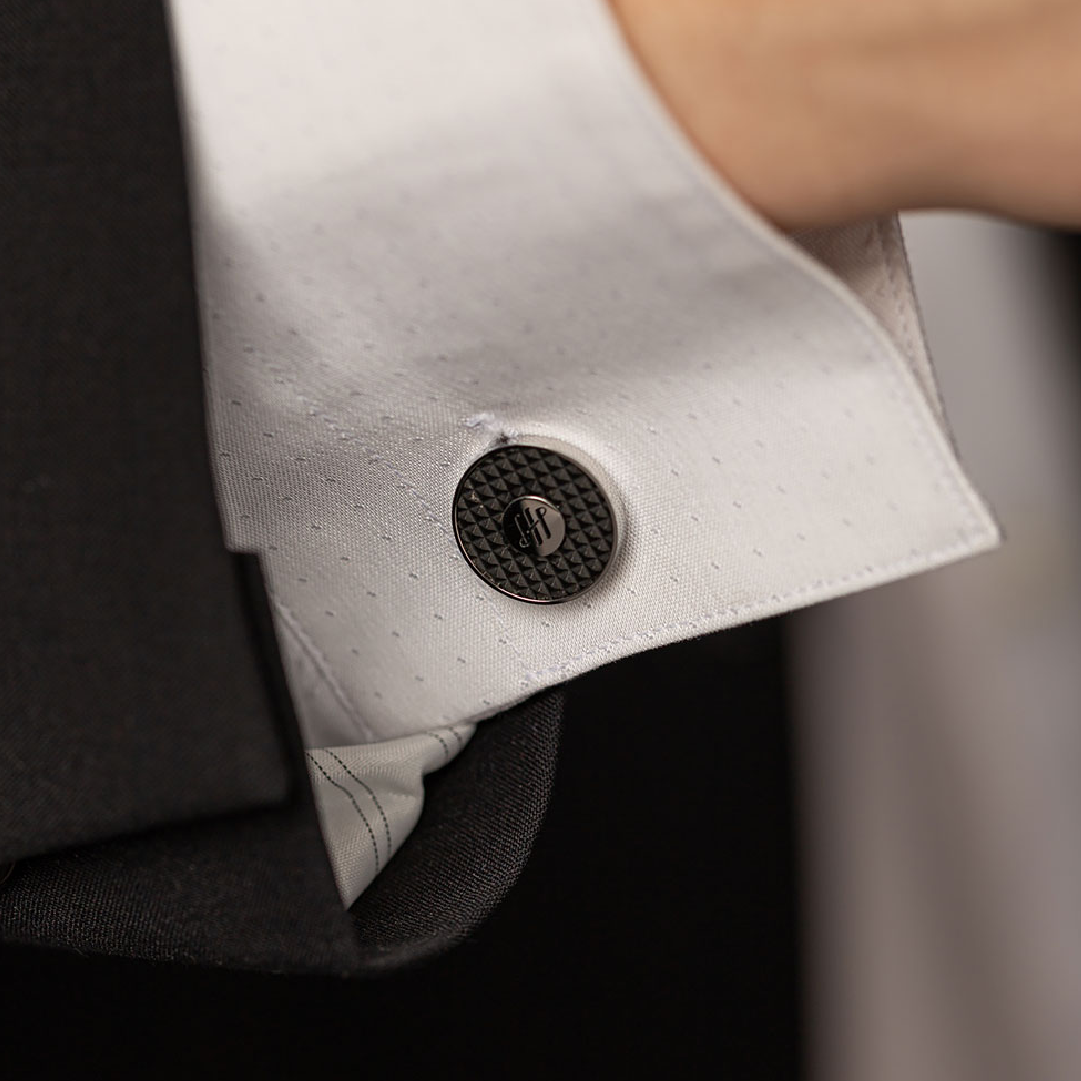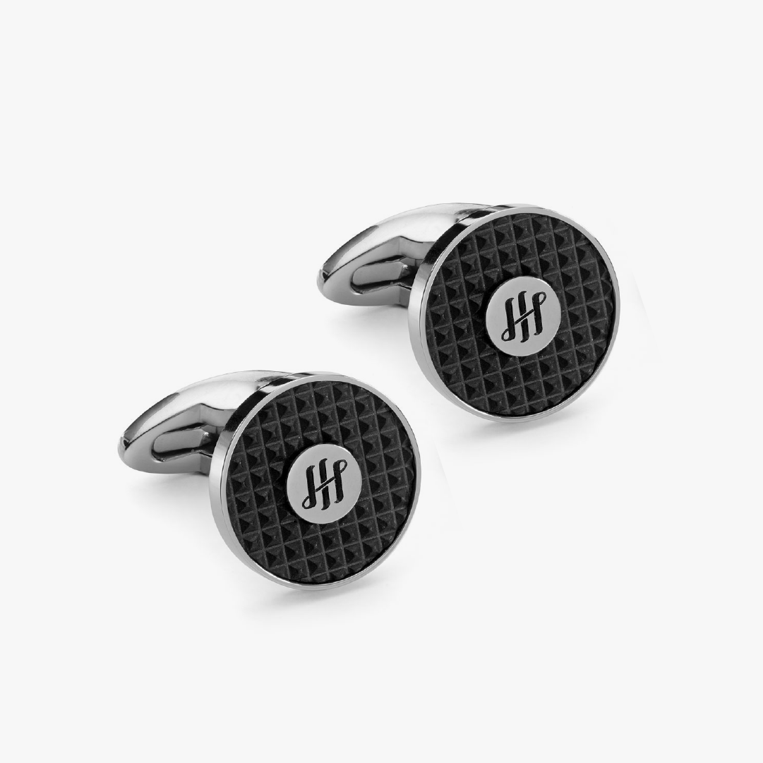 Mancornas Montegrappa Clou Ambigram redondas acero guilloché y clavos de paris