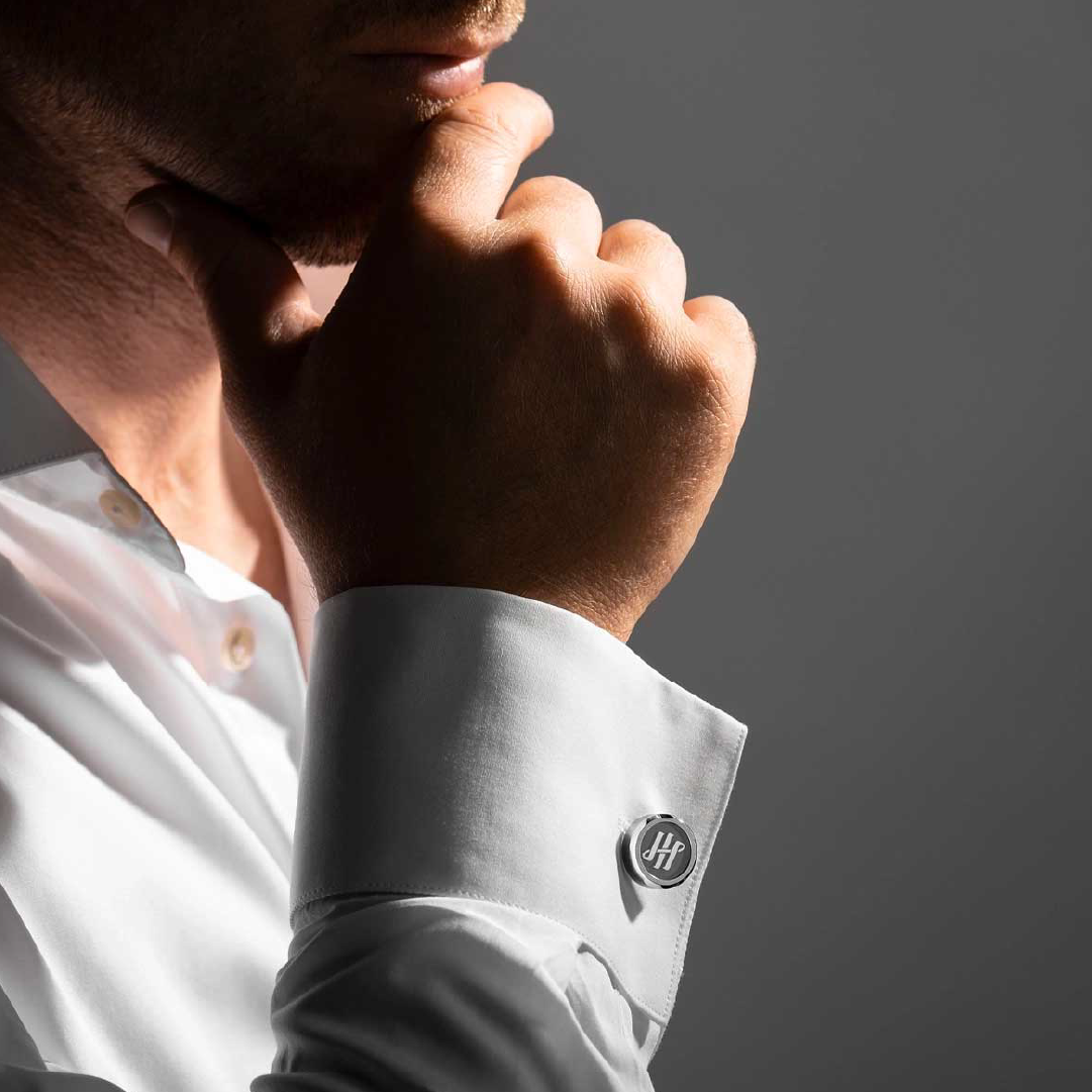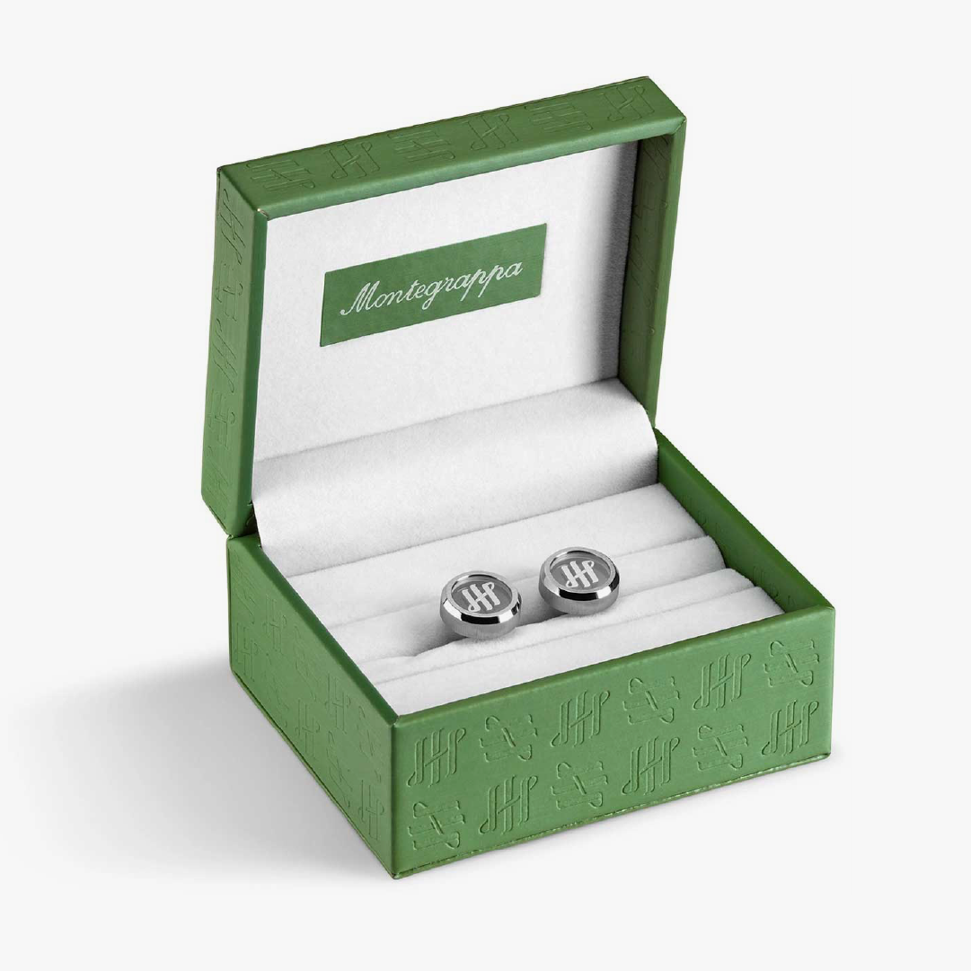 Mancornas Montegrappa Zero redondas acero, paladio y cristal de zafiro