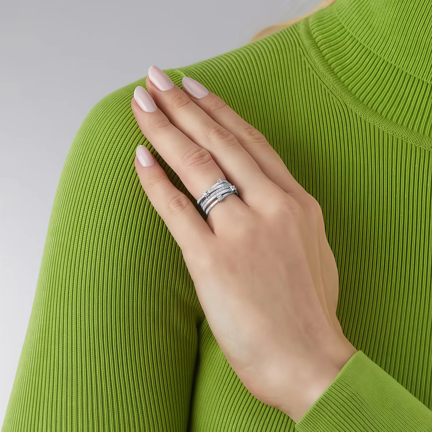 Anillo Goa cinco aros marillado una bril pave bril uñas en aros #7