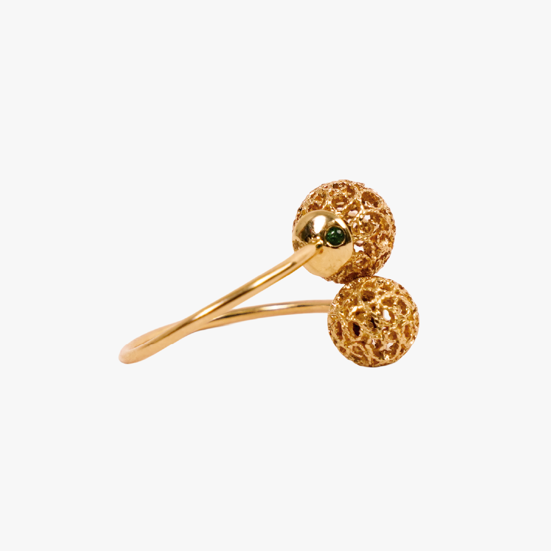 Anillo doble esfera filigrana de caracol Bauer Herencias oro amarillo 18K y esmeralda