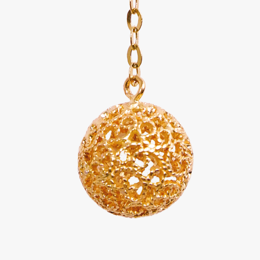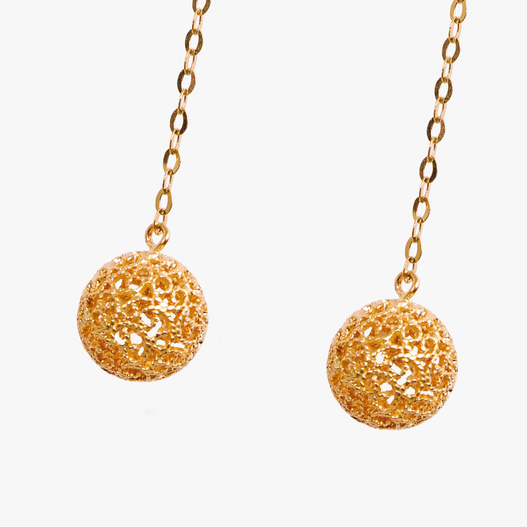 Aretes Jackets esferas colgantes de filigrana caracol Bauer Herencias oro amarillo 18K y esmeraldas