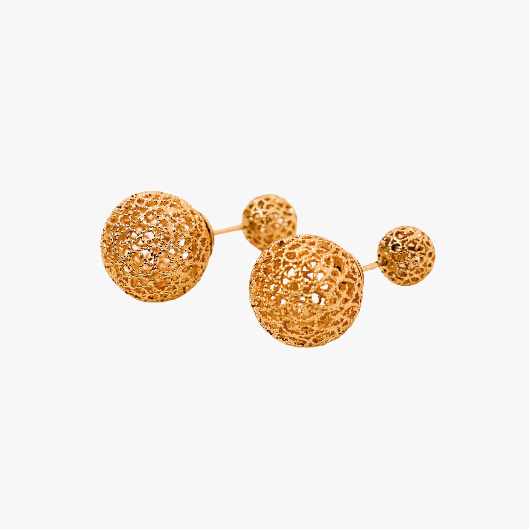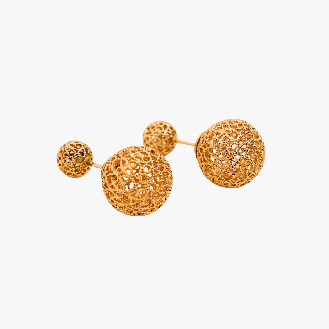 Aretes jackets esferas de filigrana caracol Bauer Herencias oro amarillo 18K y esmeralda