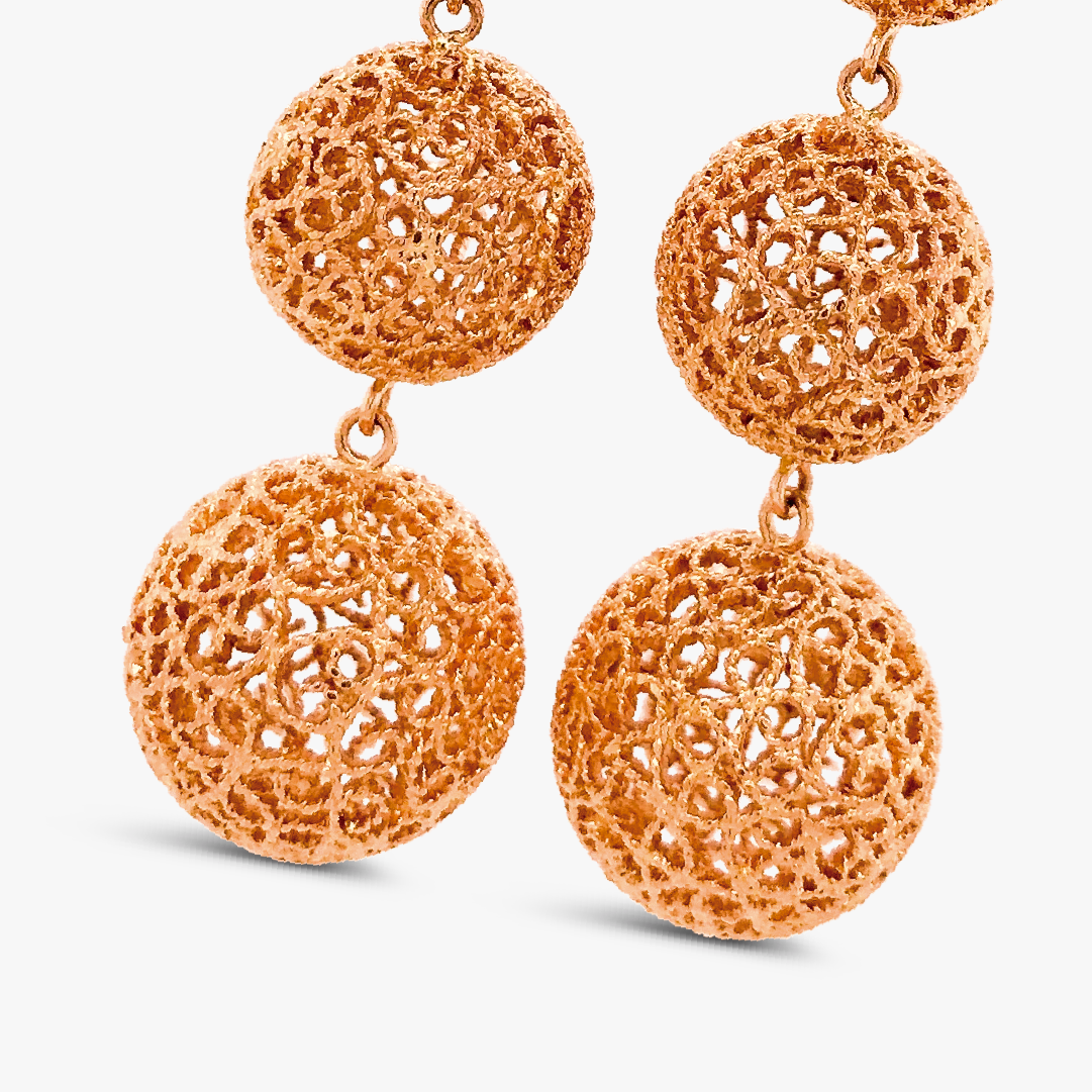 Aretes línea cresciente de esferas filigrana caracol Bauer Herencias oro amarillo 18K y esmeraldas