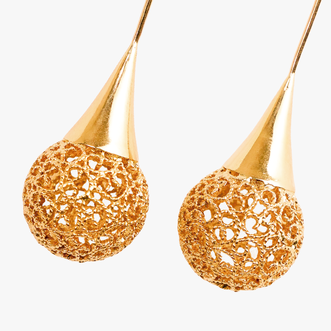 Aretes trompetas de filigrana caracol Bauer Herencias oro amarillo 18K