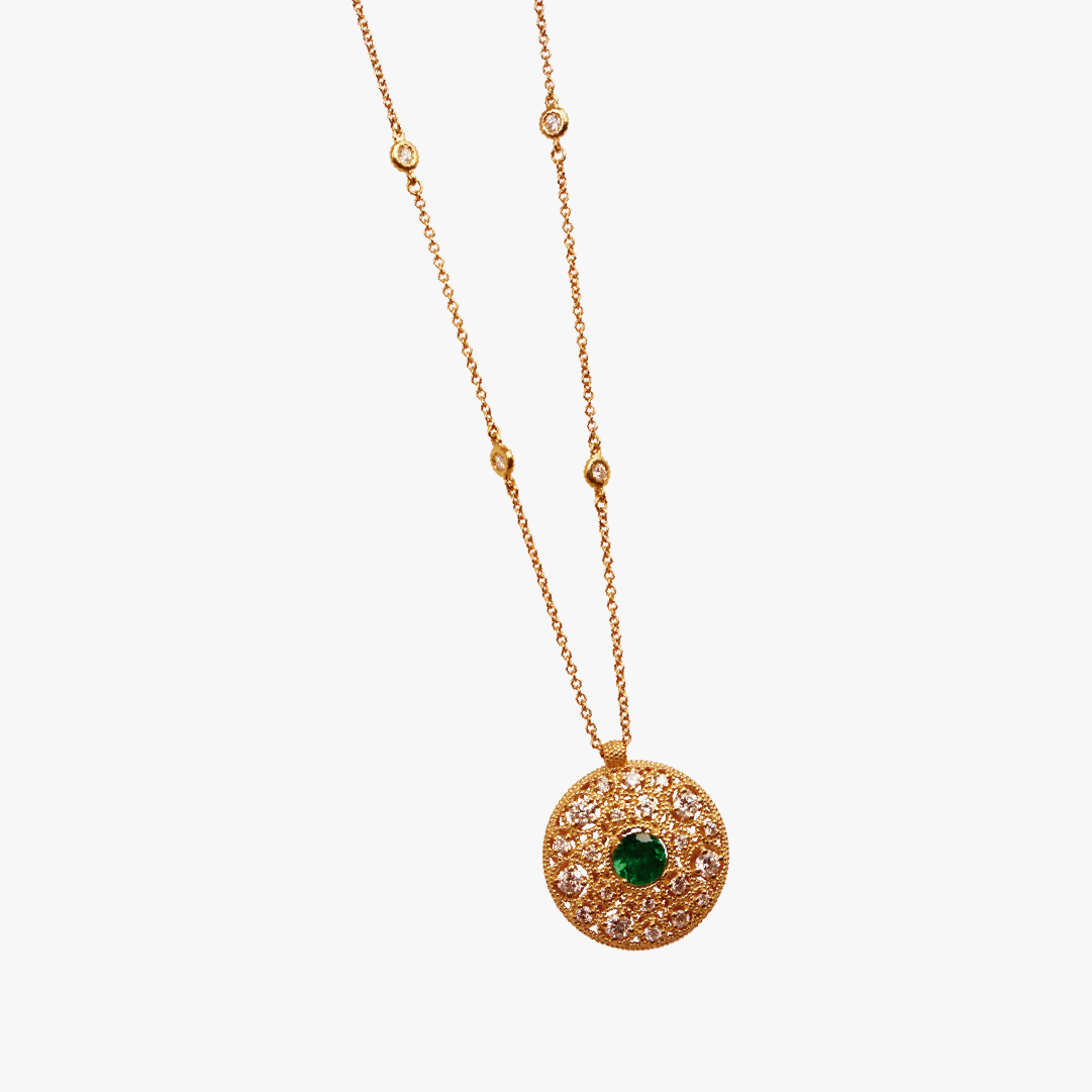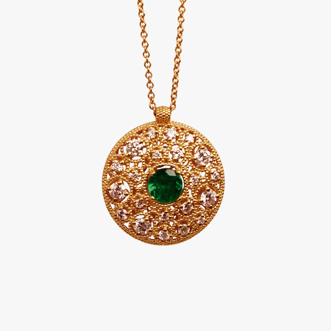Collar dije cielo estrellado de filigrana Bauer Herencias oro amarillo 18K, esmeralda y diamantes