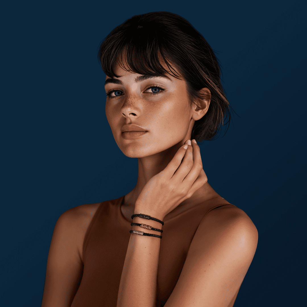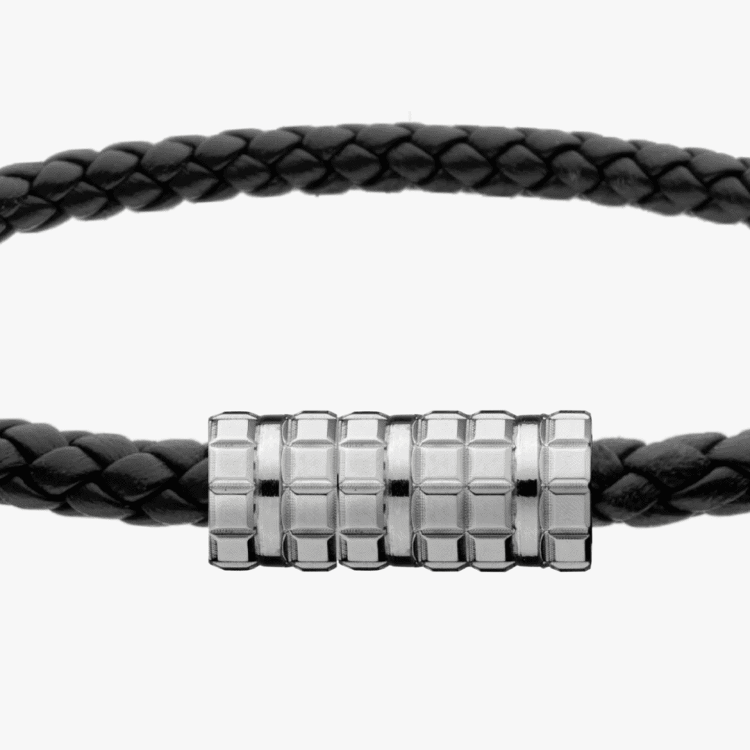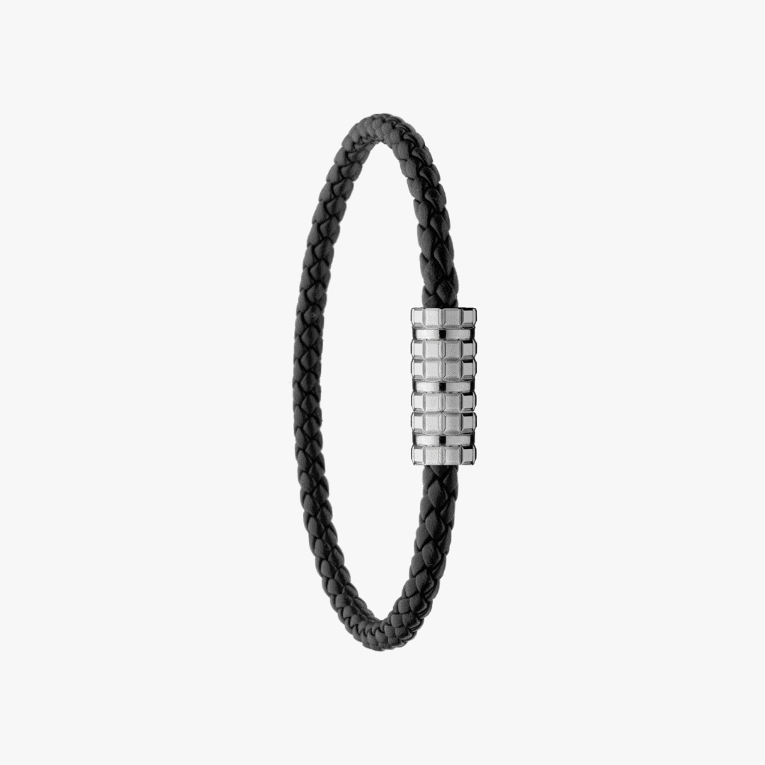 Con su diseño simple y puro, que brilla como un espejo de hielo, el cierre facetado en forma cuadrada de la pulsera de lujo Ice Cube capta inmediatamente la luz. Elaborada en cuero negro y metal de tono plateado, esta codiciada joya geométrica encarna una masculinidad moderna y elegante.
