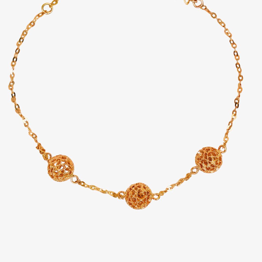 Pulsera tres esferas filigrana caracol Bauer Herencias oro amarillo 18K y esmeralda