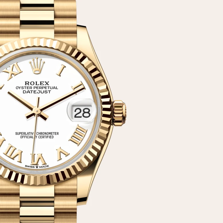 Además, era idéntico al acanalado del fondo de la caja, atornillado a ésta por la misma razón, mediante herramientas específicas de Rolex. Con el tiempo, el estriado se convirtió en un elemento puramente estético, una auténtica característica distintiva de Rolex. En la actualidad, el estriado es una marca de distinción, en oro en este Datejust 31.