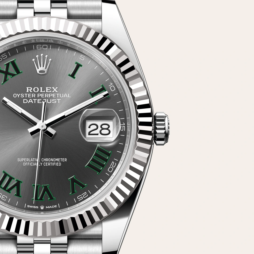 Además, era idéntico al acanalado del fondo de la caja, atornillado a ésta por la misma razón, mediante herramientas específicas de Rolex. Con el tiempo, el estriado se convirtió en un elemento puramente estético, una auténtica característica distintiva de Rolex. En la actualidad, el estriado es una marca de distinción, en oro en este Datejust 41.